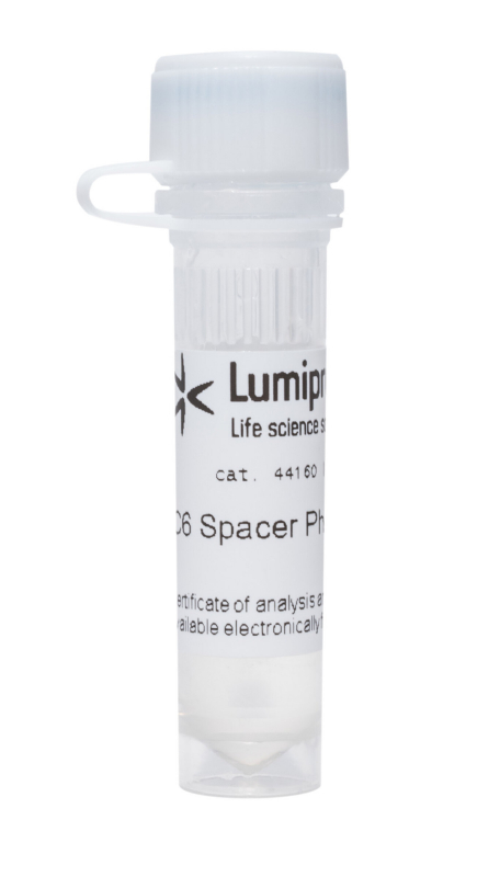 Фосфорамидит спейсер 6, C6 спейсер, является специализированным реагентом, используемым в синтезе олигонуклеотидов. Это соединение включает гексаэтиленгликолиевый спейсер в последовательности олигонуклеотидов, как внутренне, так и на 5\' конце. Остаточный срок годности товаров составляет не менее 2/3 от полного срока годности.