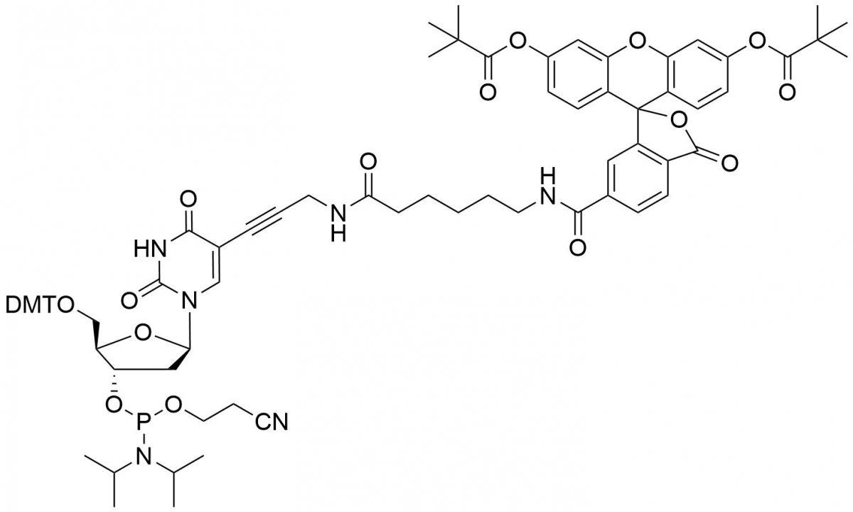 Фосфорамидит для синтеза олигонуклеотидов, меченых флуоресцеином (FAM) в середине последовательности. Остаточный срок годности товаров составляет не менее 2/3 от полного срока годности.