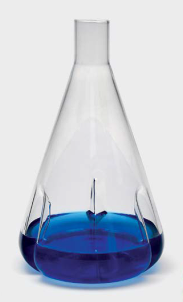 Колба Эрленмейера, с дефлекторами, прямое горлышко, стекло, 2000 мл - предназначена для культивирования микроорганизмов. Используется в научно-исследовательских лабораториях микробиологического профиля. Изготовлена из боросиликатного стекла. Оснащена 4 интегрированными дефлекторами, улучшающими перемешивание.  Дефлекторы создают турбулентный поток, увеличивают поверхность газообмена и повышают поглощение кислорода. Дефлекторы также обеспечивают постоянное завихрение, повышая эффективность перемешивания. Толстая стенка, тяжелое основание и усиленная краевая зона предотвращают разламывание. В комплект поставки не входит крышка. Объем 2000 мл