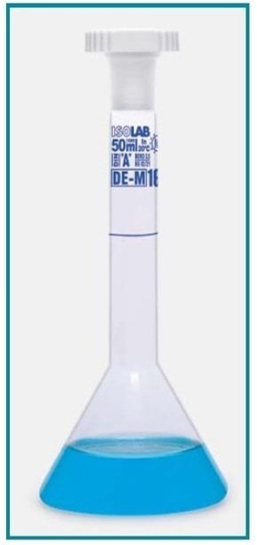 КОЛБА МЕРНАЯ ТРАПЕЦЕВИДНАЯ 2 МЛ, КЛАСС А, БЕСЦВЕТНАЯ, ГОЛУБАЯ ШКАЛА, NS 7/16