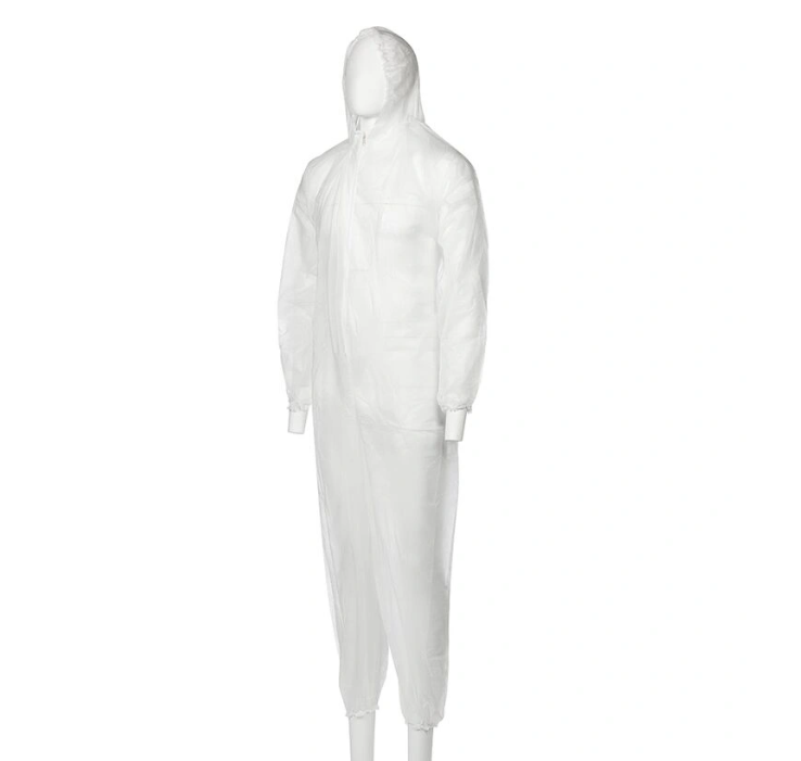 Одноразовый комбинезон белого цвета изготовлен из гипоаллергенного нетканого материала спанбонд с центральной застёжкой и с капюшоном. Обеспечивает хорошую защиту от загрязнений и хорошую воздухопроницаемость. Рукава, низ комбинезона и капюшон на резинках, для лучшей защиты от загрязнений.