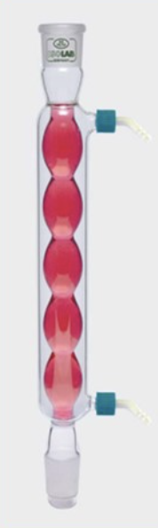 Конденсатор "Аллина" с полипропиленовым боковым отводом, длиной 250 мм. Оборудован стандартными разъемами: гнездо NS 14/23 и конус NS 14/23. Изготовлен из жаропрочного, химически устойчивого боросиликатного стекла. Оснащен полипропиленовыми боковыми отводами с резьбой GL14, подходящими для трубок с диаметром отверствия 8-9 мм. Боковые отводы могут быть легко присоединены или отсоединены, предотвращая случайное разламывание.