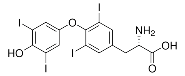 В связи с ограниченной работы склада просьба уточнять сроки поставки товара и наличие у менеджеров Skyklad по эл. почте klad@skygen.com. Дату производства уточняйте при заказе. Синоним(ы): 3,3\\',5,5"-Тетрайод-L-тиронин, 3-[4-(4-Гидрокси-3,5-дииодфенокси)-3,5-дииодфенил]-L-аланин, Т4 используют для изучения светового преобразования гормона Т4 в Т3 при регуляции фотопериодической реакции гонад у японских перепелов. Продукт используют в качестве тестового соединения для изучения влияния многочисленных гормонов на морфологию поверхности клеток яичек крыс в культуре.