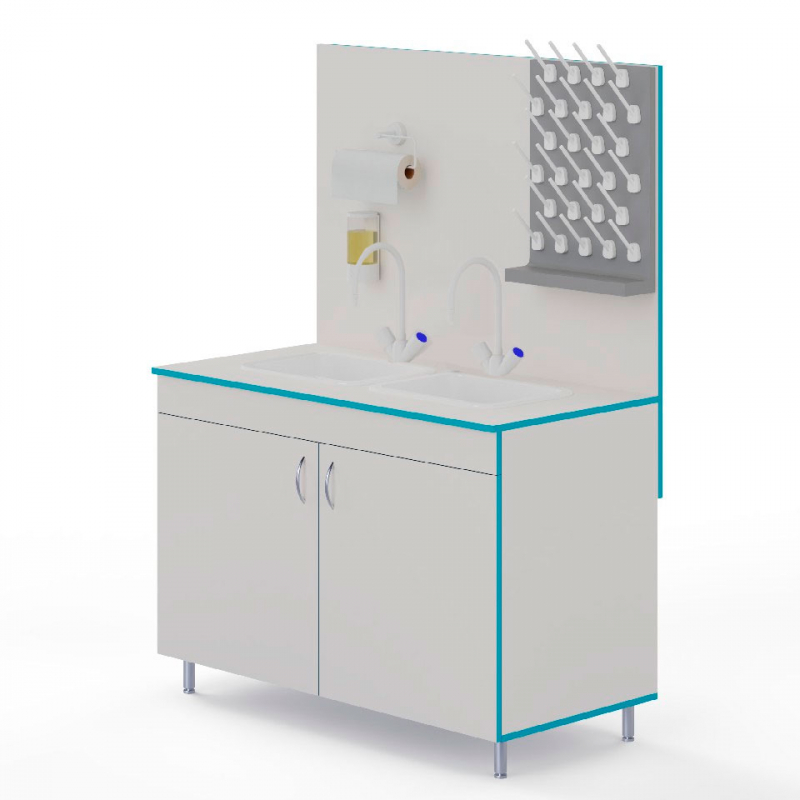 ЛАБОРАТОРНЫЙ СТОЛ-МОЙКА МО НВК 1200 ПП С ДВУМЯ СМЕСИТЕЛЯМИ (1200?600?1650)