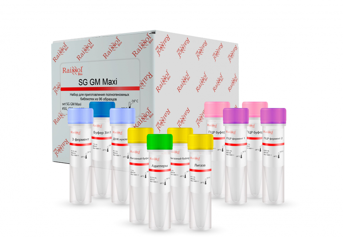 Набор реагентов SG_GM_Maxi от RaissolTM представляет собой полноценную систему ферментативной подготовки библиотек по технологии "ShotGun Sequenсing" - простые манипуляции позволяют получать фрагментированную ДНК в диапазоне от 300bp из геномной ДНК. Очистка после этапа лигирования производится с использованием специально разработанных частиц RaissolTM по технологии SPRI без необходимости промывать и высушивать частицы, что позволяет значительно сократить время подготовки библиотек. Индексирование осуществляется посредством ПЦР - система совместима с индексированными праймерами по технологии Illumina TruSeq. Рекомендуется 8 циклов ПЦР индексирования, однако допустимы изменения в зависимости от необходимых показателей финальной концентрации ДНК и относительного количества дупликатов. Очистка после этапа индексирования производится специально разработанными частицами RaissolTM по технологии SPRI. В СОСТАВ НАБОРА ВХОДИТ 2 КОМПОНЕНТА С РАЗНЫМ ТЕМПЕРАТУРНЫМ РЕЖИМОМ:  Коробка 1 - 7х9х11 см - -15С-20С Коробка 2 - 7х9х11 см -  +2С-+8С