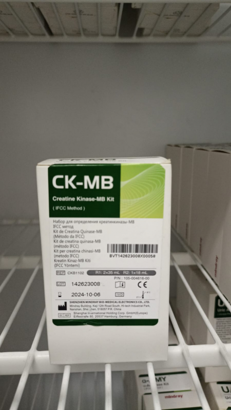 Фасовка: R1 2?35 mL + R2 1?18 mL. Назначение. Набор для количественного определения активности креатинкиназы-MB (CK-MB) в сыворотке и плазме методом фотометрии. Метод. Метод в соответствии с рекомендациями Международной Федерации Клинической Химии и лабораторной медицины (IFCC). Хранение и стабильность. Стабилен до истечения срока годности, указанного на этикетке, если хранится в закрытой фирменной упаковке при +2...+8  и защищен от света. После вскрытия флакона реагент остаётся стабильным в течение 30 дней, если хранится в в холодильнике или в охлаждаемом отсеке анализатора. Не допускайте загрязнения реагентов. Не замораживайте реагенты. Оптическая плотность реагента. Оптическая плотность реагента при 340 нм должна быть <0,5 A. Совместимость с анализаторами Mindray BS-240pro/BS-200E.