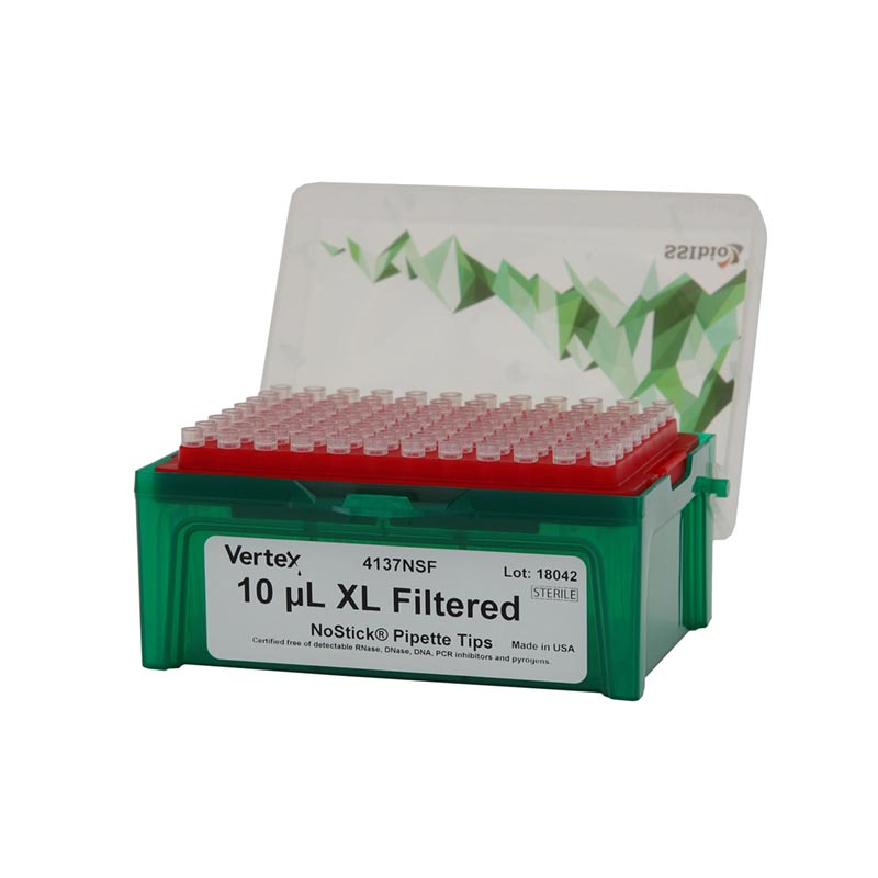 Наконечники универсальные с фильтром для лабораторных дозаторов объемом до 10 мкл, стерильные, упакованные в штативы, 96 шт/штатив, Соединенные Штаты Америки