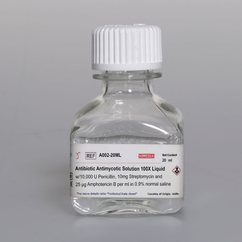 100X раствор антибиотика-антимикотика в 0,9% физиологическом растворе Концентрация пенициллина: 10 000 ед/мл Концентрация стрептомицина: 10 мг/мл Концентрация амфотерицина B: 25 мкг/мл Содержание эндотоксина: не более 0.5 EU/мл Объем: 100 мл