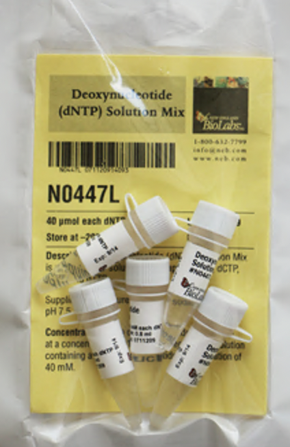 СМЕСЬ ДЕЗОКСИНУКЛЕОТИДОВ (ДАТФ, ДЦТФ, ДГТФ И ДТТФ) (10 ММ, 40 МКМОЛЬ), АРТ. N0447 L, NEW ENGLAND BIOLABS