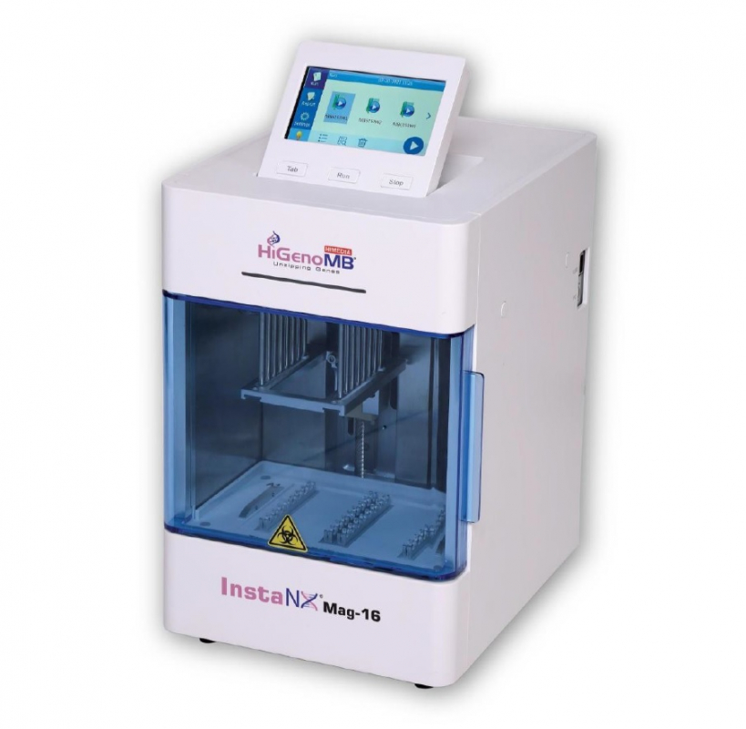 Автоматическая станция выделения нуклеиновых кислот InstaNX от HiMedia Laboratories  - Принцип выделения: на магнитных частицах - Портативная (возможность управления с помощью смартфона) - Одновременное выделение из 16 различных  образцов - УФ-стерилизация - Быстрое выделение - Объем образца от 25 до 800 мкл - Объем элюции 50 мкл (может быть изменен до 25 мкл) - Широкий перечень предраскапанных наборов для выделения ДНК/РНК из множества типов образцов - Возможность использования картриджей для одиночных образцов