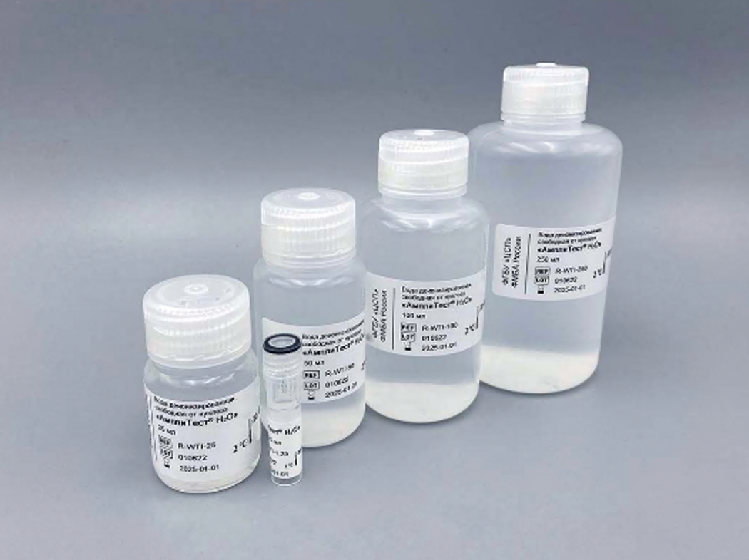 ВОДА ДЕИОНИЗИРОВАННАЯ, СВОБОДНАЯ ОТ НУКЛЕАЗ «АМПЛИТЕСТ® H2O» БЕЗ DEPC, 100 МЛ, АРТ. R-WTI-100, ЦСП ФМБА РОССИИ ФГБУ