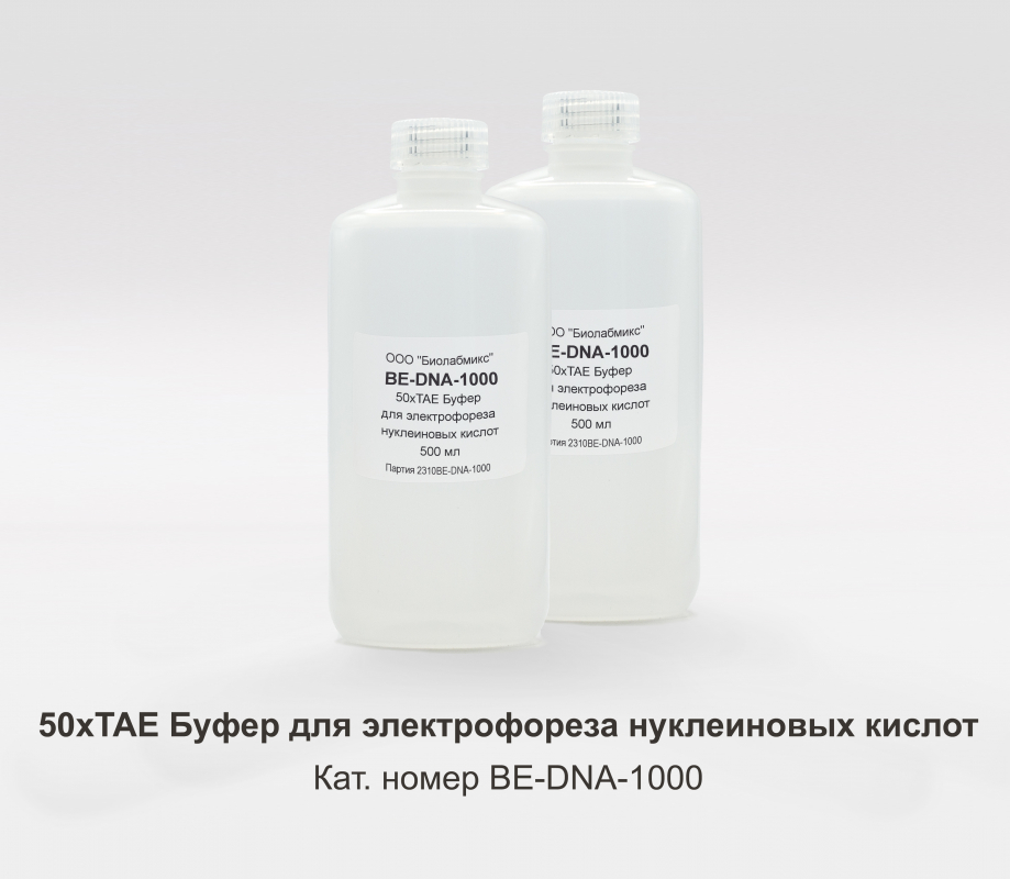 Фильтрованный 50-кратный буфер, предварительно смешанный.  Для приготовления однократного раствора для электрофореза нуклеиновых кислот развести 50? реактив в 50 раз. Область применения: Буфер для электрофореза нуклеиновых кислот в агарозном геле. Фасовка: 1000 мл