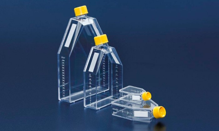 Культуральные флаконы ТРР изготовлены из полистирола высокого качества. Представлены в четырех форматах - с поверхностью роста клеток 25, 75, 150 и 300 см2. Для каждого формата доступны флаконы с двумя типами крышек: крышка с гидрофобным фильтром и крышка «VENT» с возможностью вентиляции. Оптико-механическая обработка поверхности культурального флакона, проводимая ТРР, увеличивает адгезию клеток и обеспечивает равномерный рост клеток. Обрабатывается только дно флакона, чтобы избежать нежелательного роста клеток вверх по стенкам.