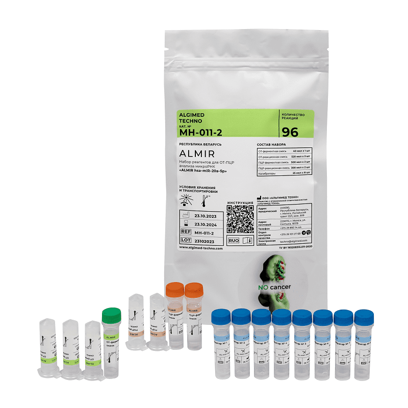 Набор реагентов «ALMIR hsa-mir-10b-3p», на 96 реакций, ТУ BY 193208315.011-2020, кат. MH-011-13 Предназначены для количественного определения микроРНК в составе смеси РНК, выделенной из биологического материала.