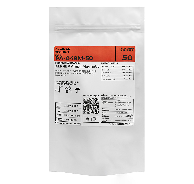 Набор реагентов «ALPREP Ampli Magnetic» на 50 образцов, ТУ BY 193208315.049-2022, кат. РA-049M-50 Предназначен для очистки ДНК из реакционных смесей после ПЦР, лигирования, рестрикции методом магнитной сорбции.