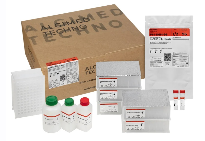Набор реагентов «ALPREP Milk-M Auto» на 96 образцов, ТУ BY 193208315.101-2024, кат. PM-101M-96 Предназначен для автоматического выделения ДНК/РНК из образцов молока и молочной продукции методом магнитной сорбции.