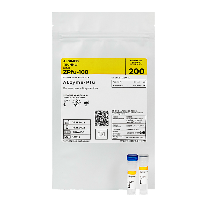 ДНК-полимераза «ALZYME Pfu», 10х буфер с MgCl2, 200 единиц активности, ТУ BY 193208315.047-2022, кат. ZP-047-200UN Высокопроцессивная термостабильная ДНК-полимераза.