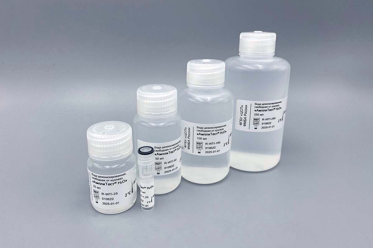 Сроки доставки "АмплиТест® H2O» 250 мл" увеличены. Пожалуйста, уточняйте данную информацию при оформлении заказа.  Вода деионизированная, свободная от нуклеаз. В производстве не используются токсичные вещества, такие как DEPC (диэтилпирокарбонат), чтобы избежать ингибирования ферментативных реакций. Назначение: Для молекулярной биологии Метод получения: Ионный обмен и обратный осмос Срок годности: 30 месяцев Ограничение использования: Продукт разработан и продается исключительно в исследовательских целях и только для использования в молекулярной биологии. Продукт не тестировался для использования в разработке или производстве лекарственных средств, а также не подходит для введения in vivo людям или животным."