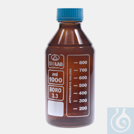 Бутыль, винтовая крышка, среднее горло, боросиликатное стекло, янтарная, 1000 мл