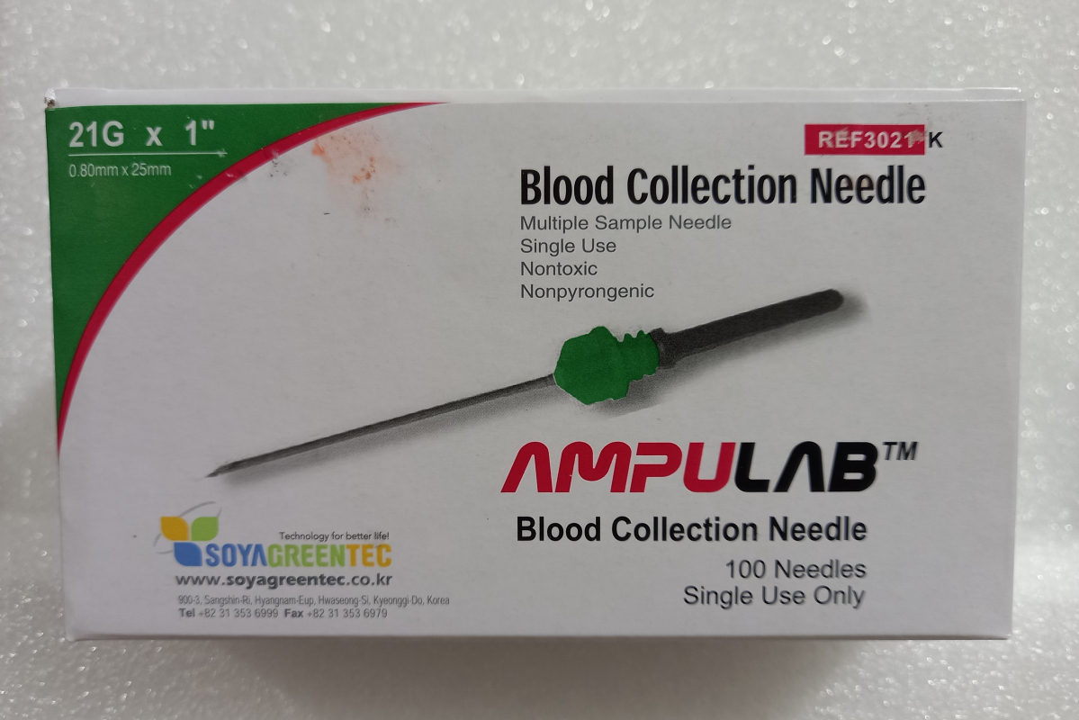 Стерильные двусторонние иглы с резиновым клапаном, снабженные резьбой для вкручивания в держатель (наружная винтовая резьба) для многократного отбора проб у одного пациента. Диаметр – 21G (0,8 мм), длина иглы – 1” (25,4 мм.) Цветовая кодировка - зелёный колпачок. Этикетка с перфорацией; на этикетке указано: торговое наименование иглы, логотип и наименование производителя; серия (lot); срок годности; размеры иглы; значки «стерилизовано этиленоксидом», «не использовать повторно». Упаковка – картонная коробка на 100 шт. На коробке изображена схема – руководство по использованию. РУ от 18 мая 2016 года № ФСЗ 2010/08573