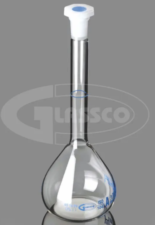 Колба мерная 500 мл, СС, NS 19/26, класс А, с PE пробк., голубая град, ISO, 130.202.08 Glassco