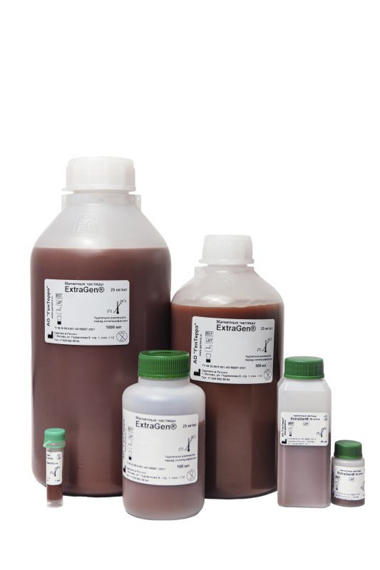 ExtraGen® серия стабильных парамагнитные частиц, идеально подходящих для выделения нуклеиновых кислот. ExtraGen® обладает высокой эффективностью связывания с нуклеиновыми кислотами, легoк и прост в использовании. Частицы ExtraGen® обладают высокой стабильностью в различных условиях, что особенно важно на этапах пробоподготовки, в частности на стадии лизиса.