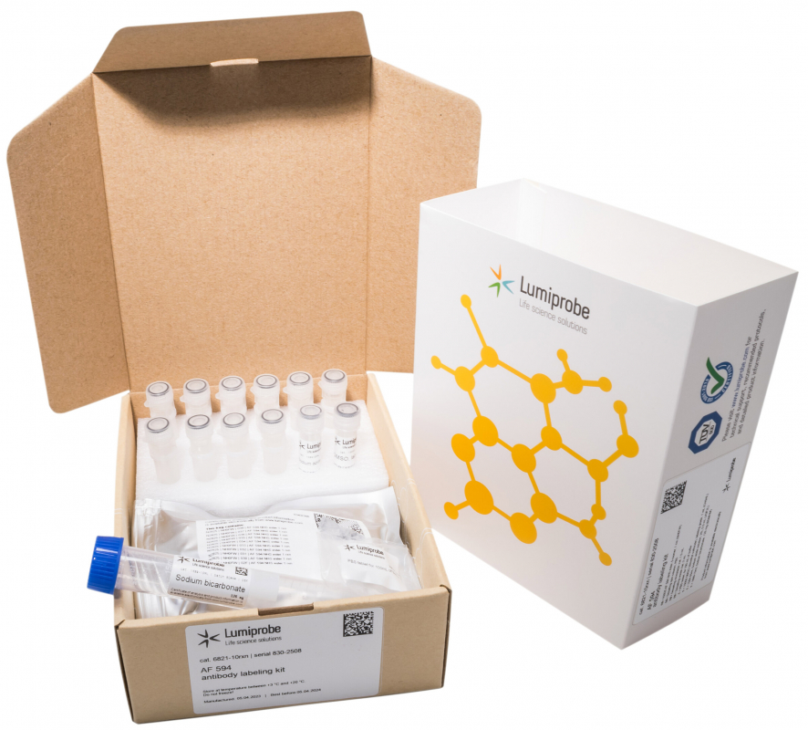 Готовый набор для мечения антител (и других белков подобного размера) красителем AF594 в форме активированного эфира. Набор содержит все необходимые реагенты и расходные материалы. Остаточный срок годности Товаров составляет не менее 2/3 от полного срока годности.