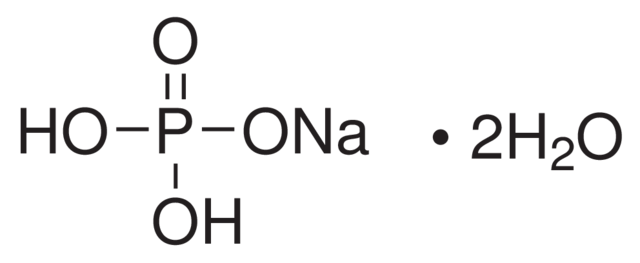 В связи с инвентаризацией склада, пожалуйста, уточняйте актуальные цены и наличие товаров, написав на klad@skygen.com. Натрия дигидроген ортофосфат дигидрат, CAS 13472-35-0. Химическое соединение, состоящие из натрия, фосфора, водорода и молекулы воды. Натрия дигидроген ортофосфат дигидрат используется в различных областях. Используется в качестве стабилизатора и эмульгатора в некоторых продуктах. Может быть применен в различных процессах, включая регулирование pH и стабилизацию растворов. Молекулярная масса : 156.01.