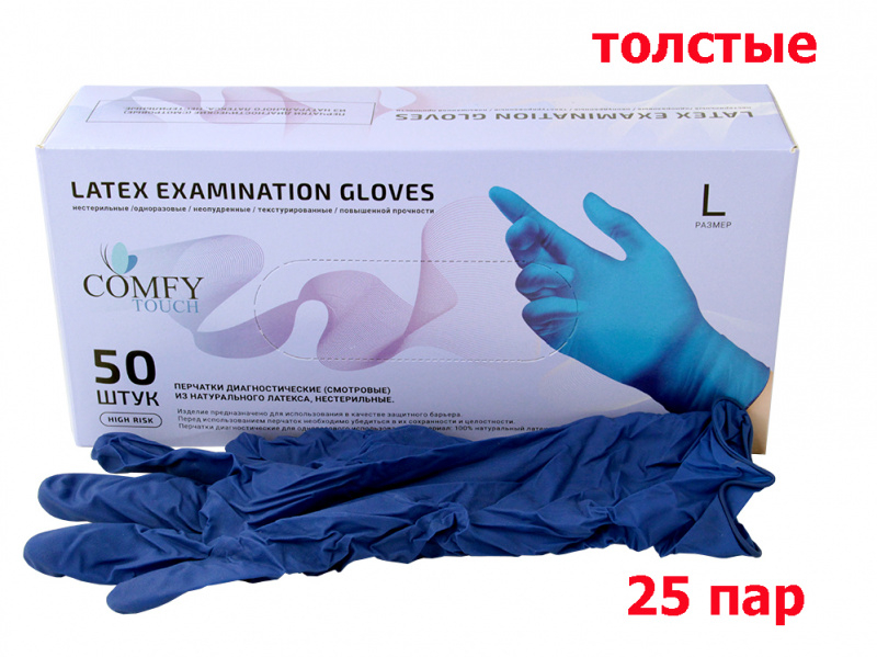 Перчатки диагностические (смотровые) из натурального латекса, нестерильные. Темно-синего цвета, неопудренные, текстурированные, повышенной прочности, одноразовые, с удлиненной манжетой. Предназначены для использования в качестве средств индивидуальной защиты рук. Перчатки HIGH RISK, устойчивые к механическим повреждениям, с высоким уровнем защиты от воздействия агрессивных химических средств. Подходят для :
