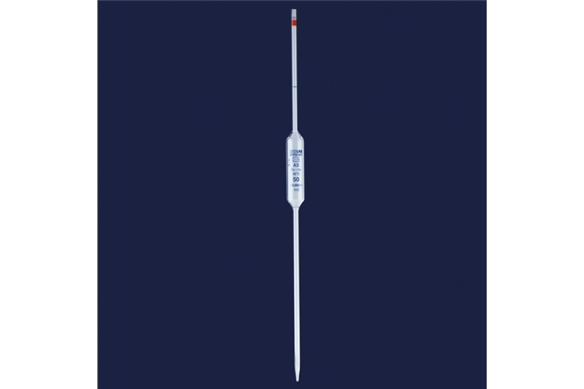 ПИПЕТКА 50 МЛ - СТЕКЛО - ОБЪЕМНЫЙ - КЛАСС АS - СООТВЕТСТВИЕ СЕРТИФИКАТА. - ГОЛУБАЯ ШКАЛА,10 ШТ/УП