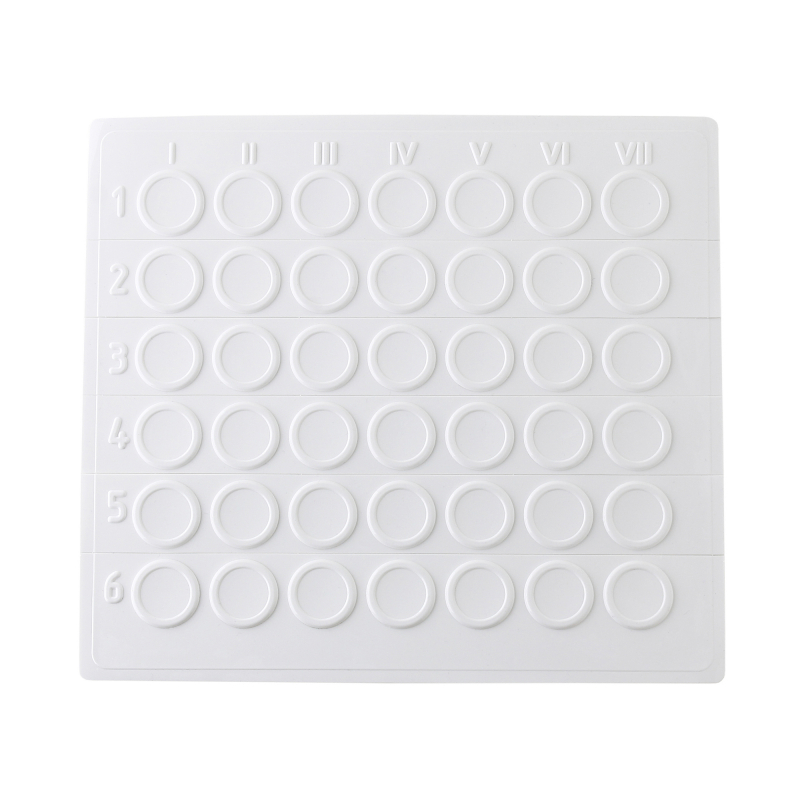 Планшет предназначен для определения групп крови методом прямой реакции агглютинации и проведения проб на совместимость донора и реципиента. 7 строк по 6 лунок в каждой. Цифровая маркировка — «1, 2, 3, 4, 5, 6» и «I, II, III, IV, V, VI, VII» облегчает проведение серологических и иммунологических работ. Лунки круглые, плоскодонные. Планшет специально сделан таким образом, что капля находится в центре лунки и позволяет четко рассмотреть агглютинацию. Делится на 6 планшетов по 7 лунок