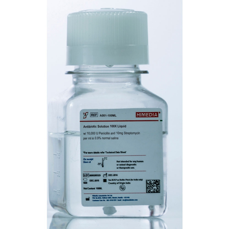 100X раствор пенициллин-стрептомицина в 0,9% физиологическом растворе Концентрация пенициллина: 10 000 ед/мл Концентрация стрептомицина: 10 мг/мл Содержание эндотоксина: не более 0.5EU/мл